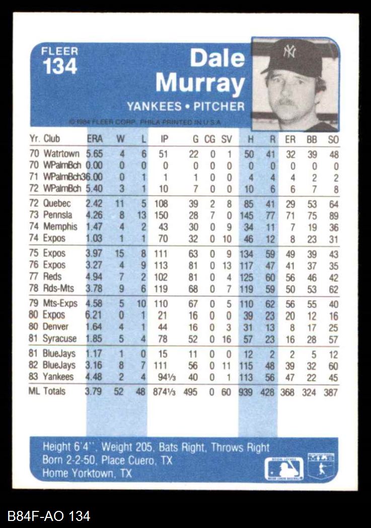 1984 Fleer Baseball Cards (1,885 available)1984 Fleer Yankees (63 available)