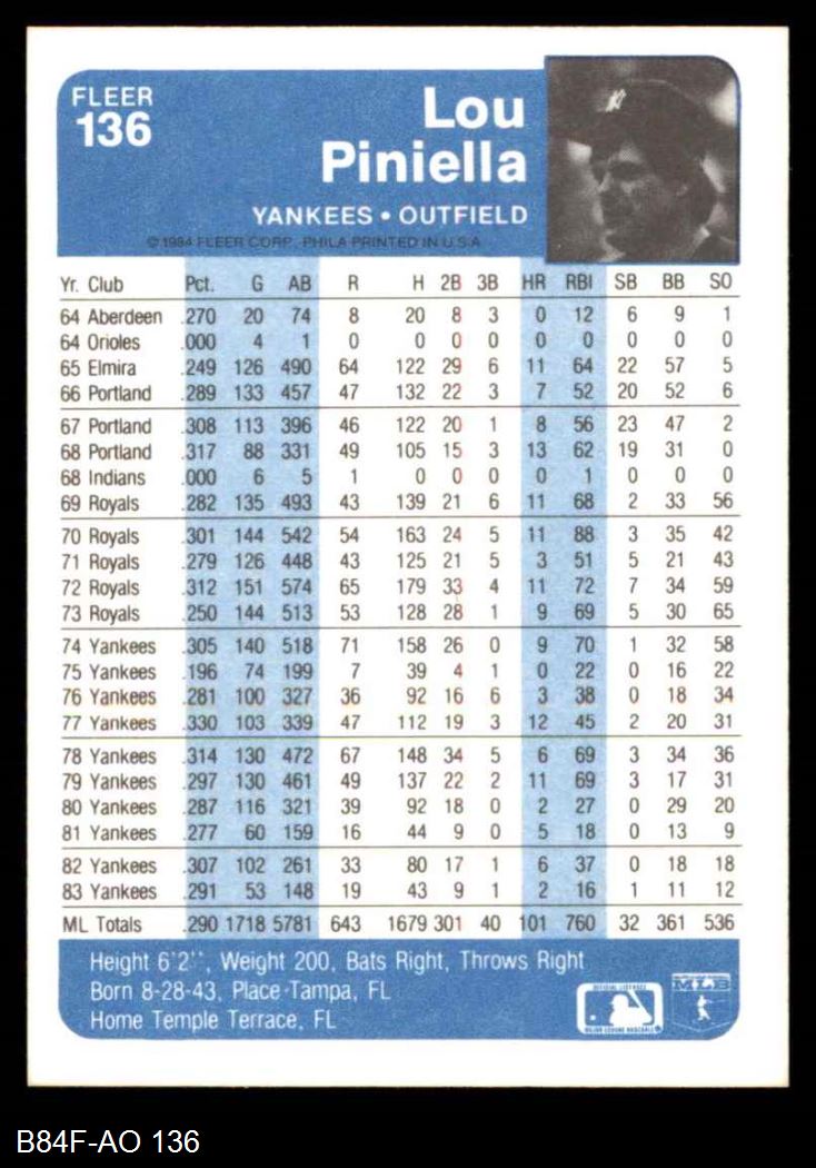 1984 Fleer Baseball Cards (1,885 available)1984 Fleer Yankees (63 available)