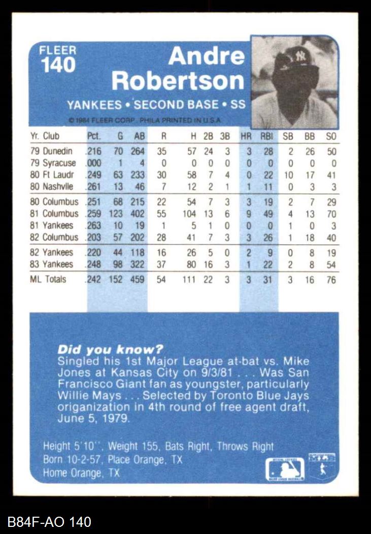 1984 Fleer Baseball Cards (1,882 available)1984 Fleer Yankees (64 available)