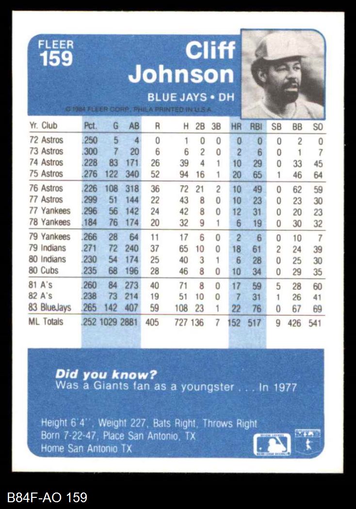 1984 Fleer Baseball Cards (1,858 available)1984 Fleer Blue Jays (92 available)