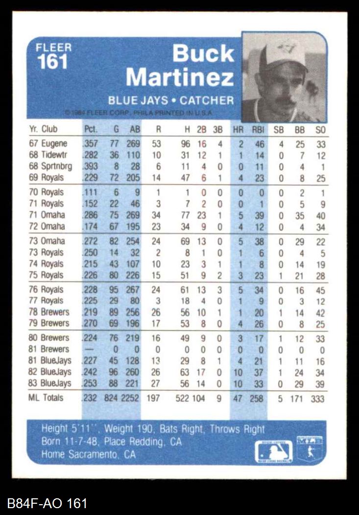 1984 Fleer Baseball Cards (1,885 available)1984 Fleer Blue Jays (92 available)