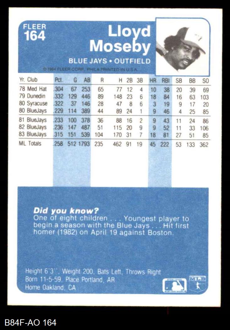 1984 Fleer #164 Lloyd Moseby 8 - NM/MT
