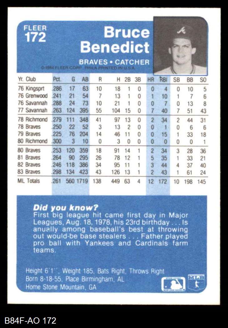 1984 Fleer #172 Bruce Benedict 8 - NM/MT