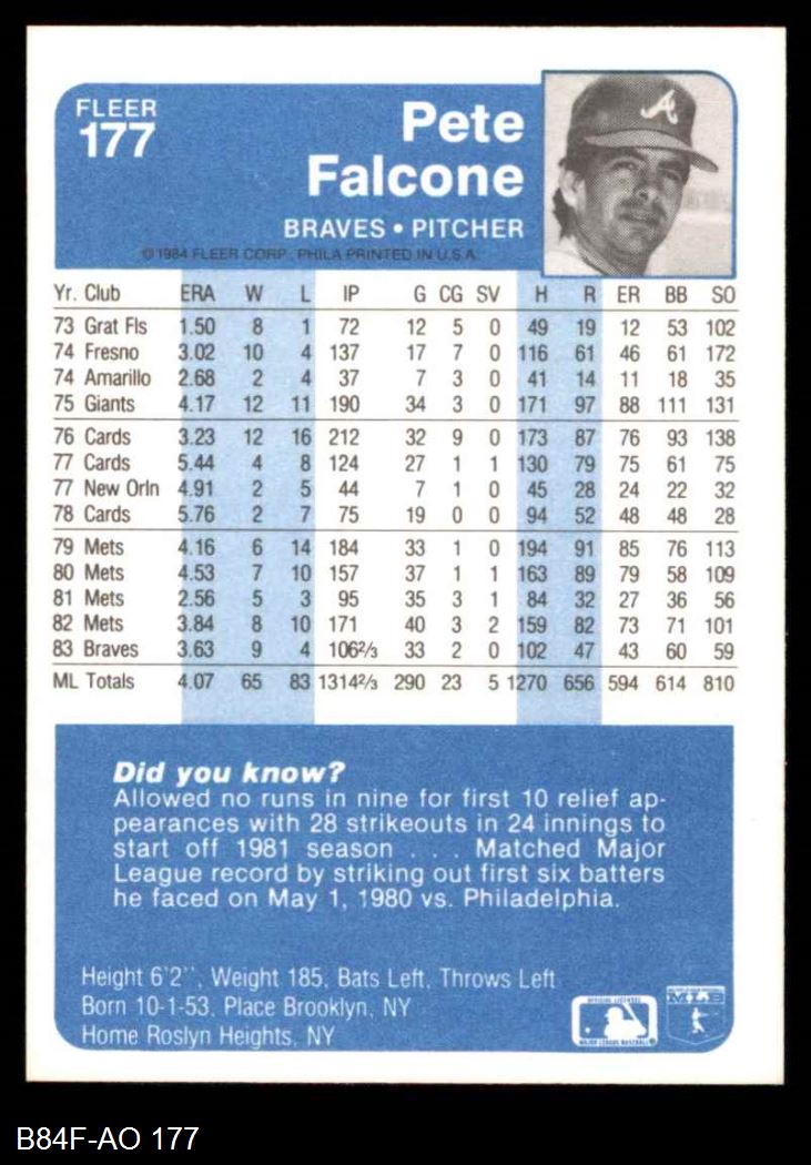 1984 Fleer Baseball Cards (1,885 available)1984 Fleer Braves (79 available)
