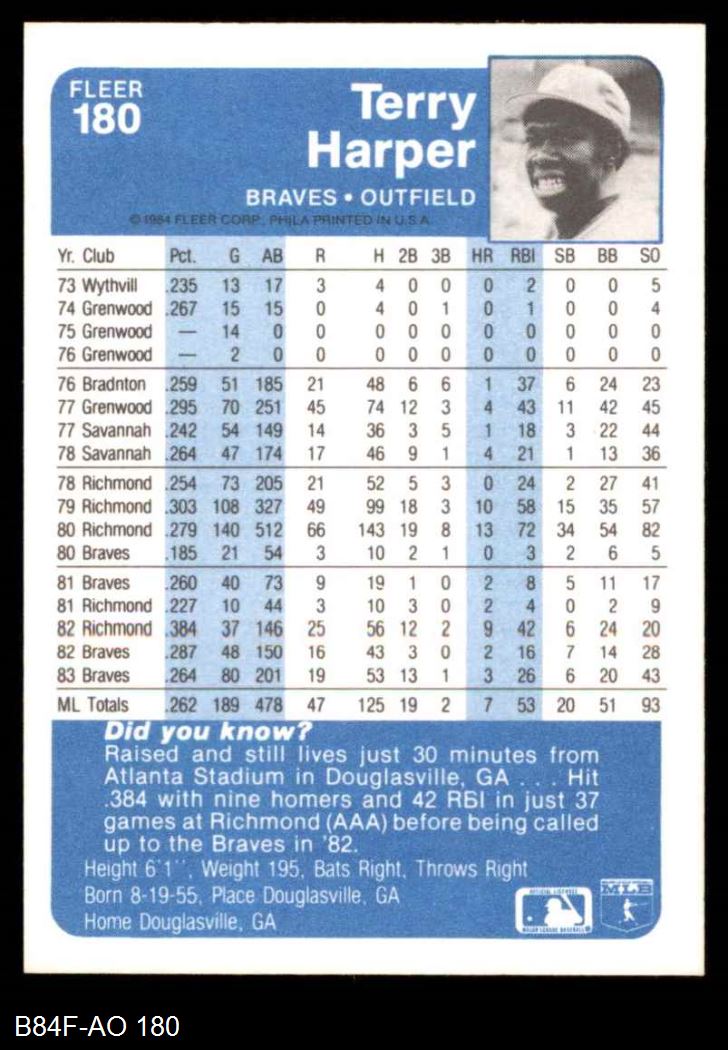 1984 Fleer Baseball Cards (1,894 available)1984 Fleer Braves (55 available)