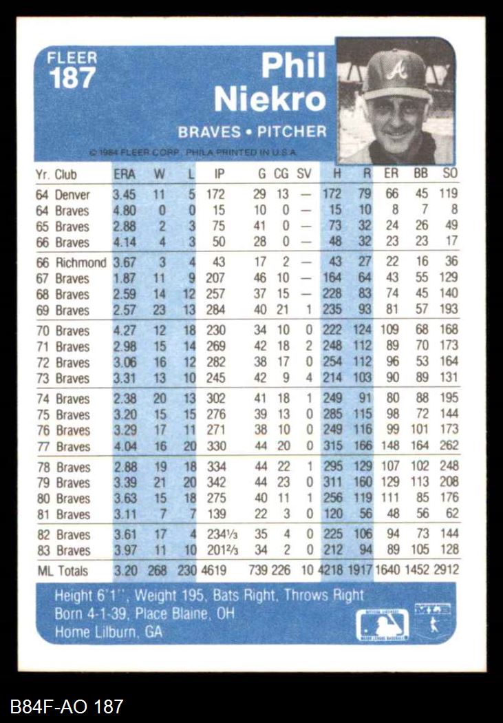 1984 Fleer #187 Phil Niekro 8 - NM/MT