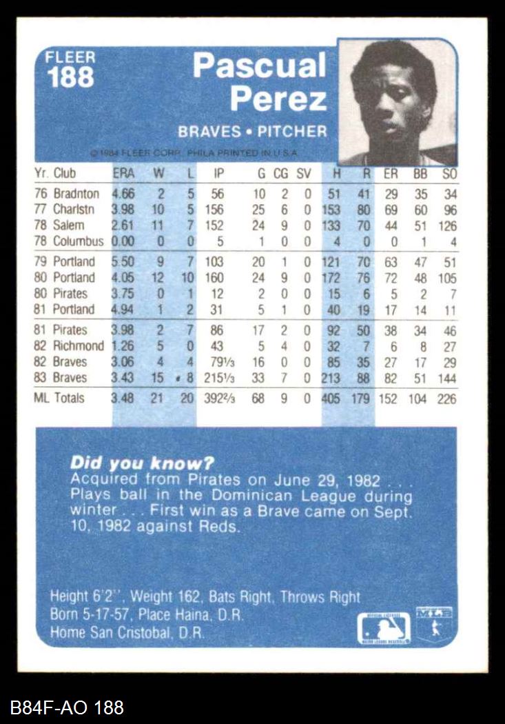 1984 Fleer #188 Pascual Perez 8 - NM/MT