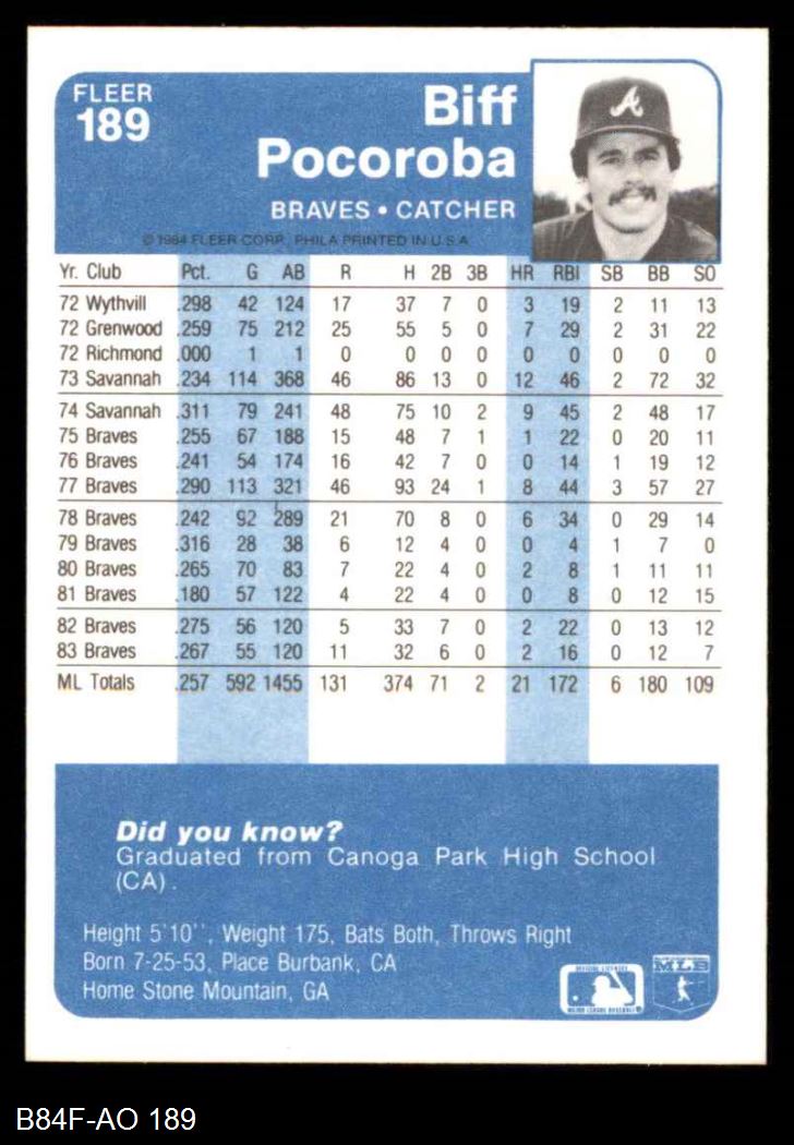 1984 Fleer #189 Biff Pocoroba 8 - NM/MT