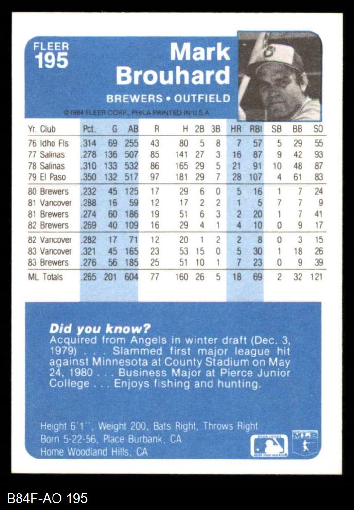 1984 Fleer #195 Mark Brouhard