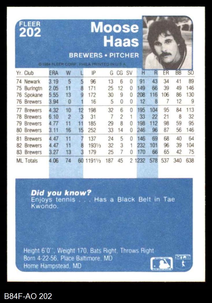 1984 Fleer #202 Moose Haas 8 - NM/MT