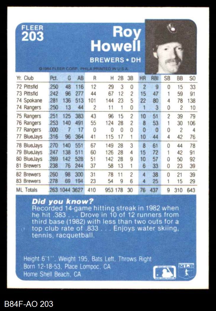 1984 Fleer Baseball Cards (1,882 available)1984 Fleer Brewers (96 available)