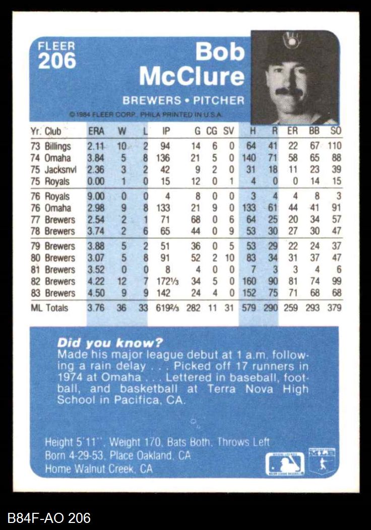 1984 Fleer Baseball Cards (1,882 available)1984 Fleer Brewers (96 available)