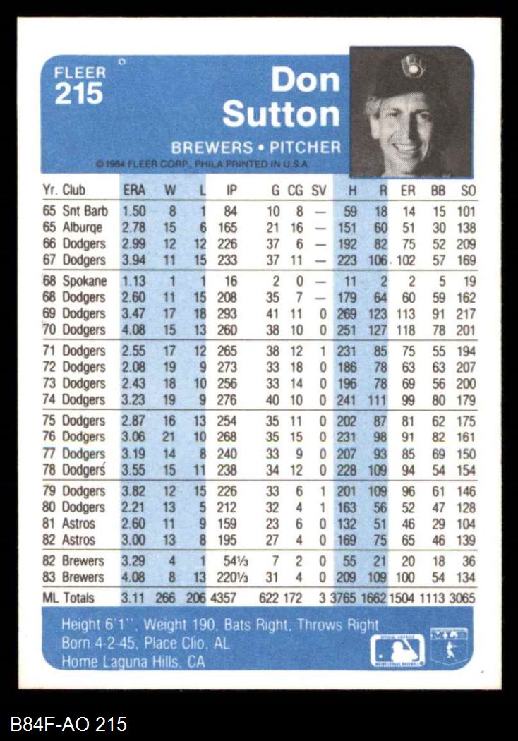 1984 Fleer Baseball Cards (1,882 available)1984 Fleer Brewers (96 available)
