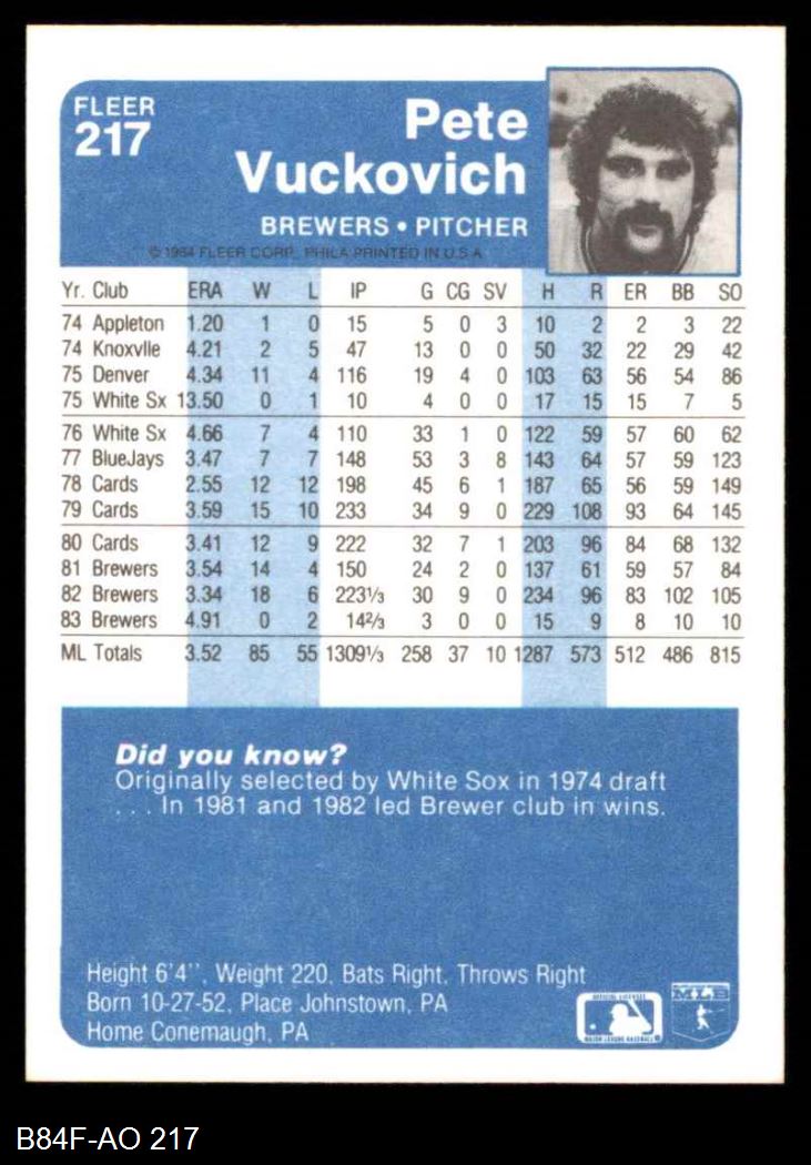 1984 Fleer Baseball Cards (1,882 available)1984 Fleer Brewers (96 available)