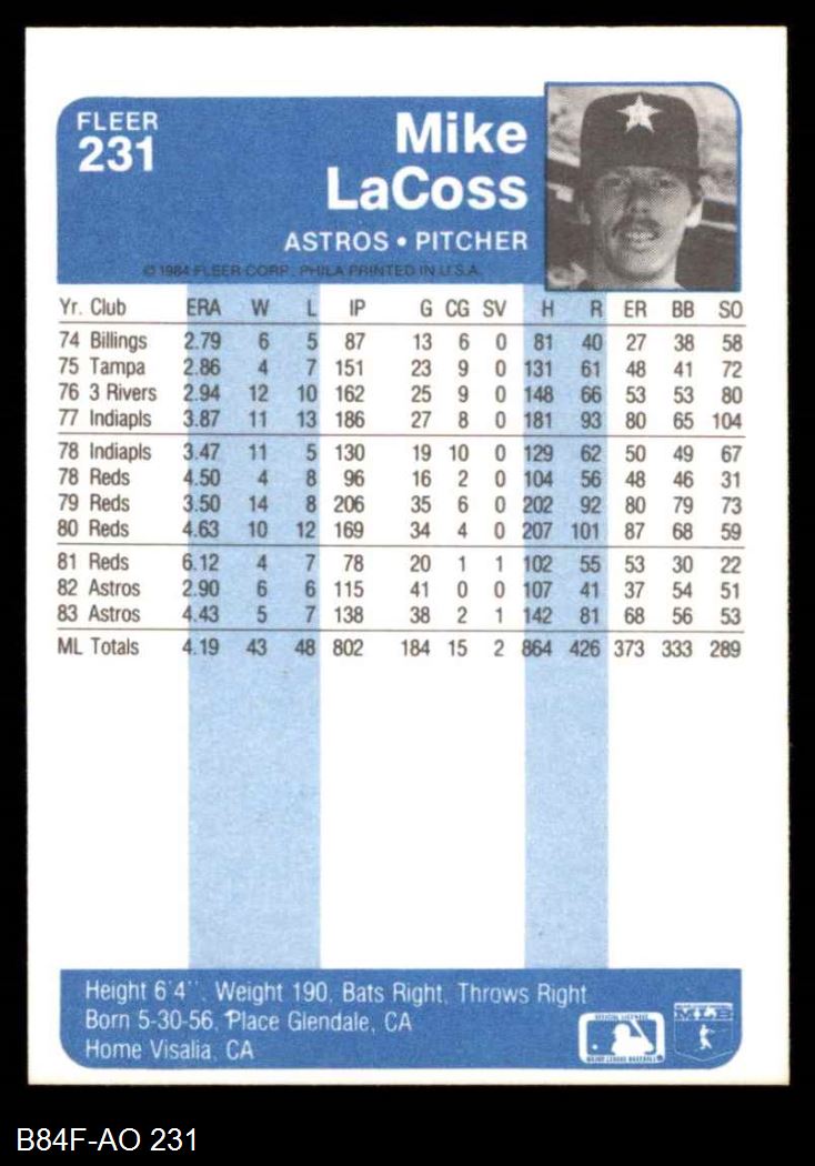 1984 Fleer #231 Mike LaCoss 8 - NM/MT