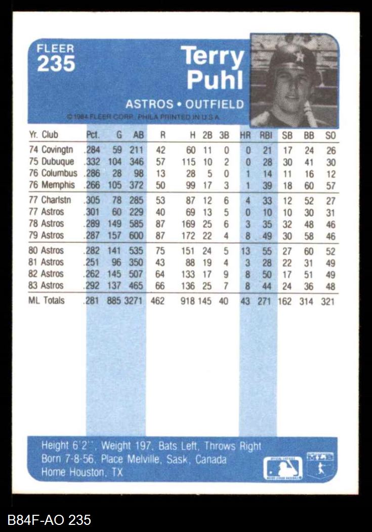 1984 Fleer #235 Terry Puhl 8 - NM/MT