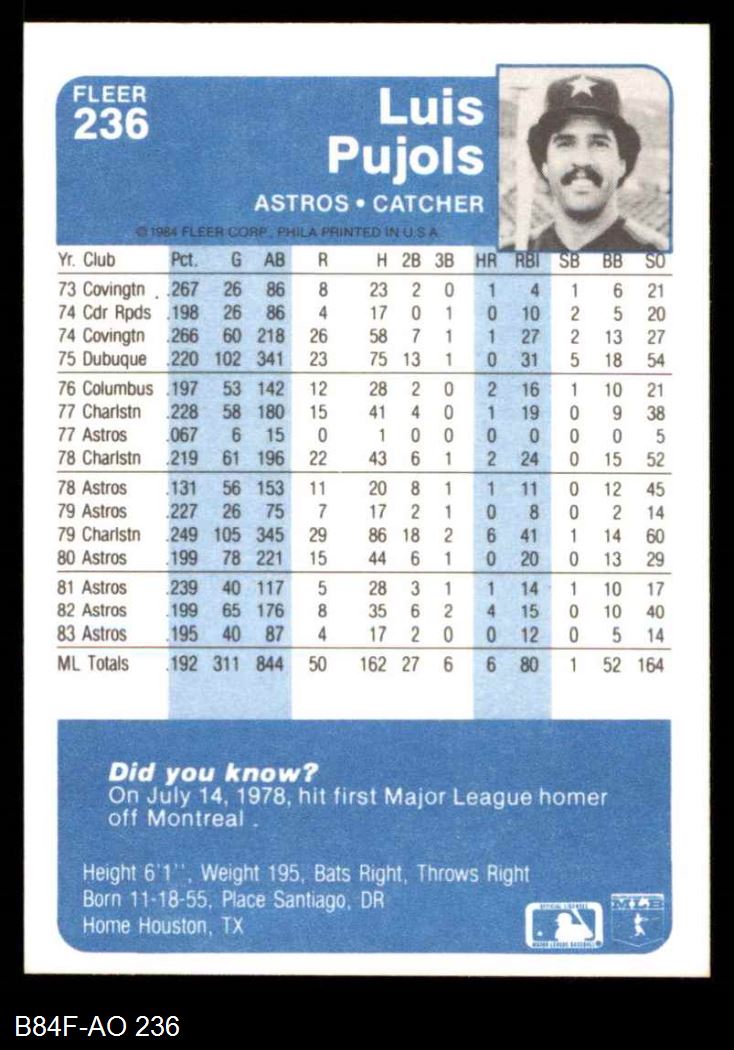 1984 Fleer Baseball Cards (1,882 available)1984 Fleer Astros (93 available)