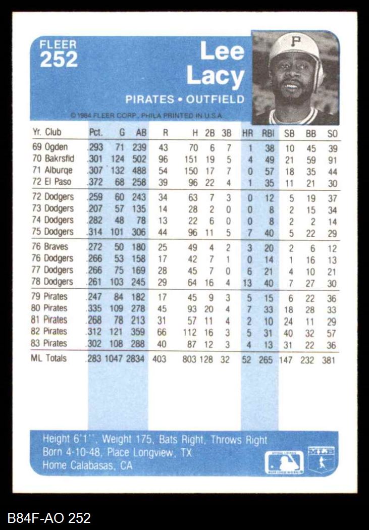1984 Fleer #252 Lee Lacy 8 - NM/MT