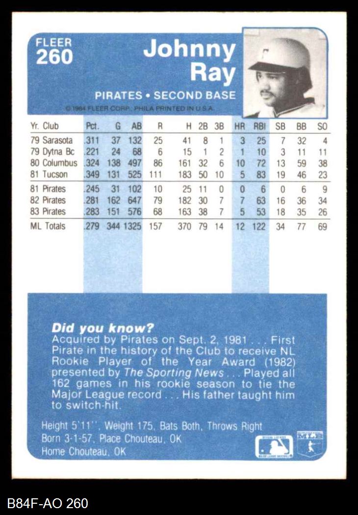 1984 Fleer Baseball Cards (1,885 available)1984 Fleer Pirates (58 available)