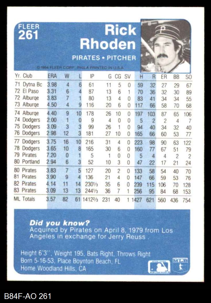 1984 Fleer Baseball Cards (1,884 available)1984 Fleer Pirates (58 available)
