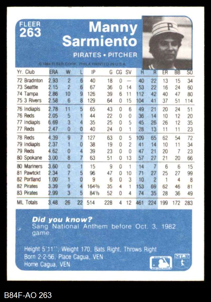 1984 Fleer Baseball Cards (1,885 available)1984 Fleer Pirates (58 available)