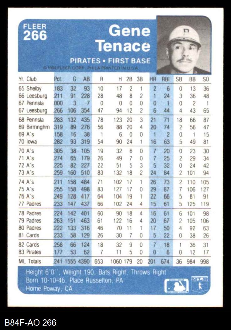 1984 Fleer Baseball Cards (1,885 available)1984 Fleer Pirates (58 available)