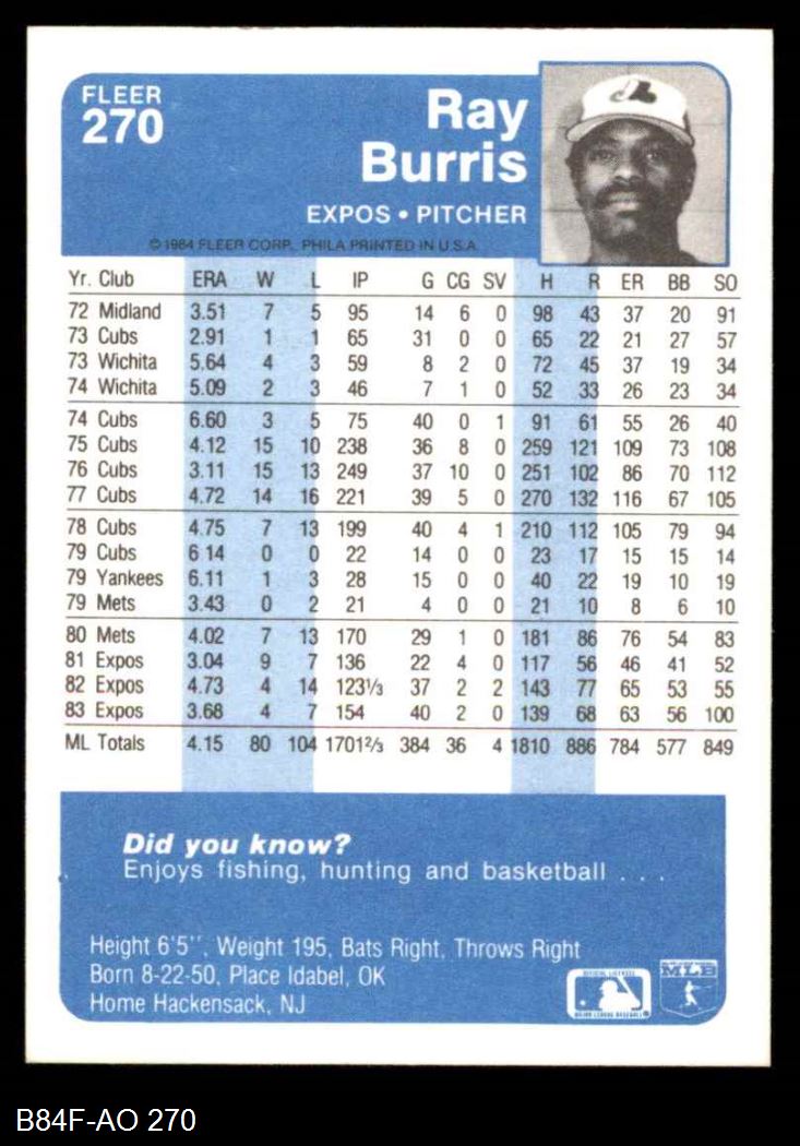 1984 Fleer Baseball Cards (1,885 available)1984 Fleer Expos (81 available)