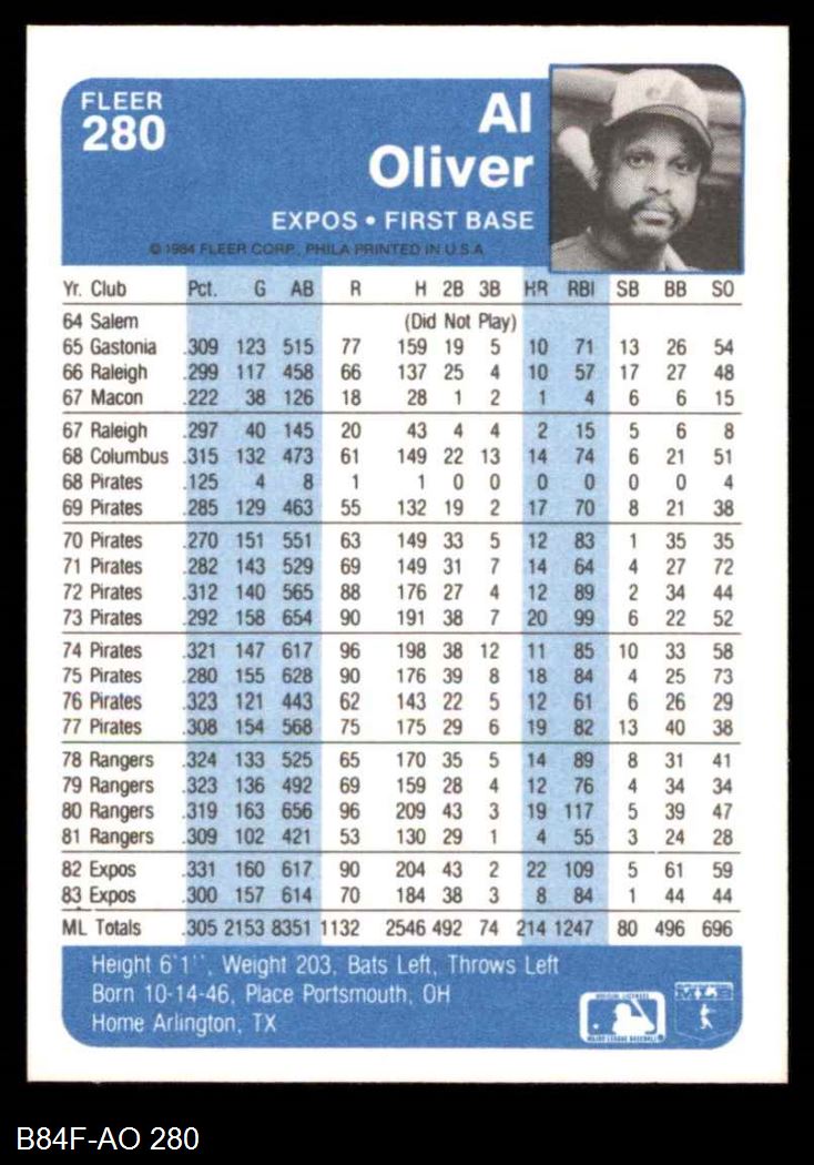 1984 Fleer #280 Al Oliver 8 - NM/MT