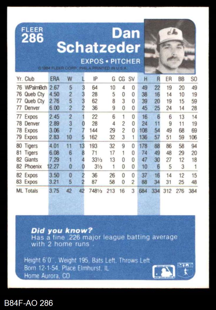 1984 Fleer Baseball Cards (1,885 available)1984 Fleer Expos (81 available)