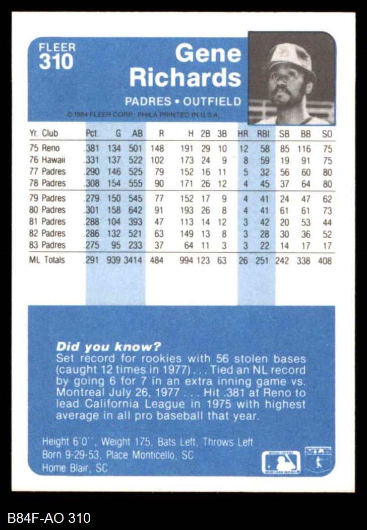 1984 Fleer #310 Gene Richards
