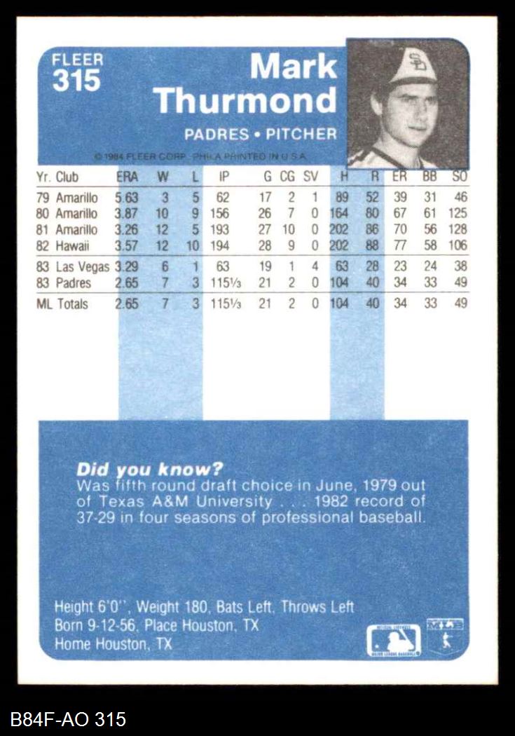 1984 Fleer #315 Mark Thurmond 8 - NM/MT