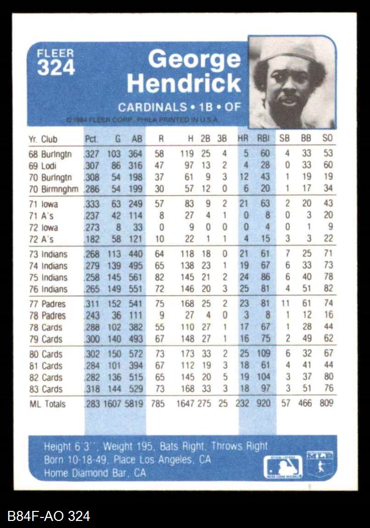 1984 Fleer #324 George Hendrick