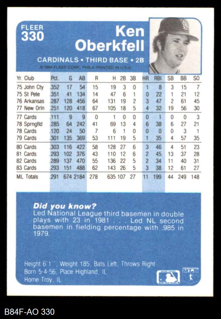 1984 Fleer #330 Ken Oberkfell 8 - NM/MT