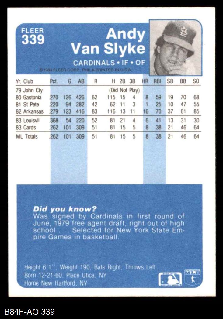 1984 Fleer #339 Andy Van Slyke
