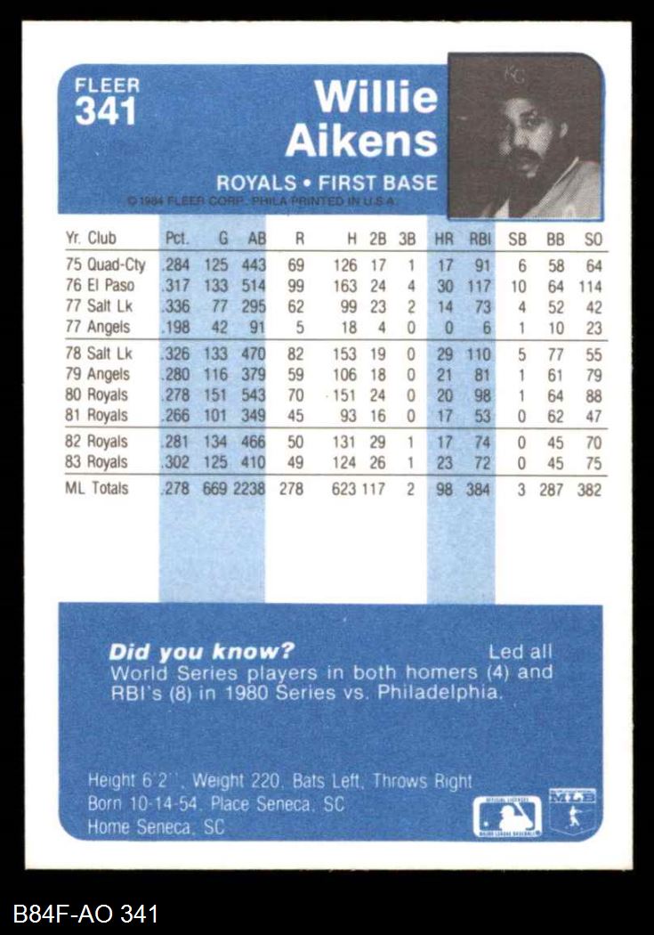 1984 Fleer #341 Willie Aikens 8 - NM/MT