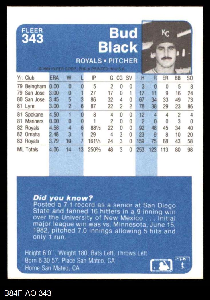 1984 Fleer Baseball Cards (1,882 available)1984 Fleer Royals (89 available)