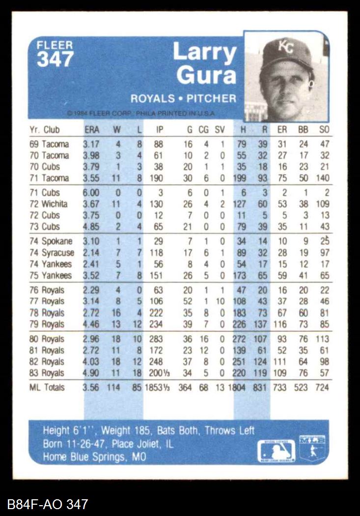 1984 Fleer #347 Larry Gura 8 - NM/MT