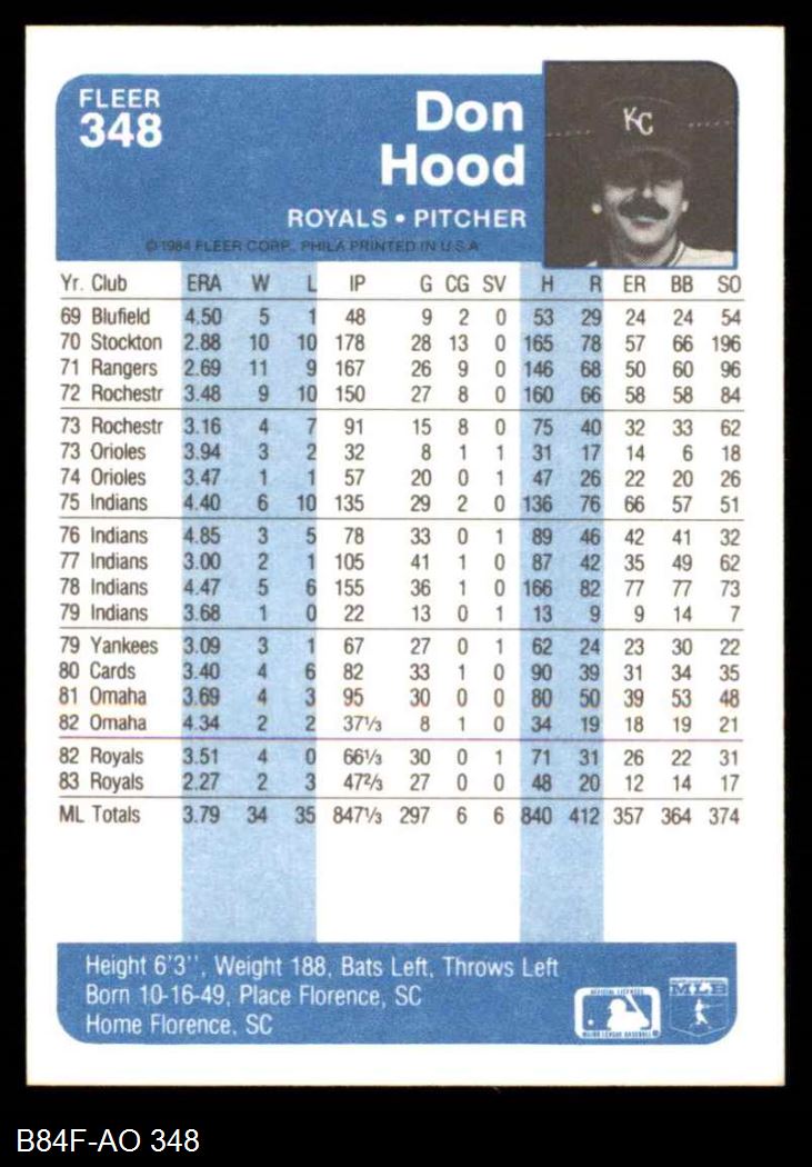 1984 Fleer #348 Don Hood 8 - NM/MT
