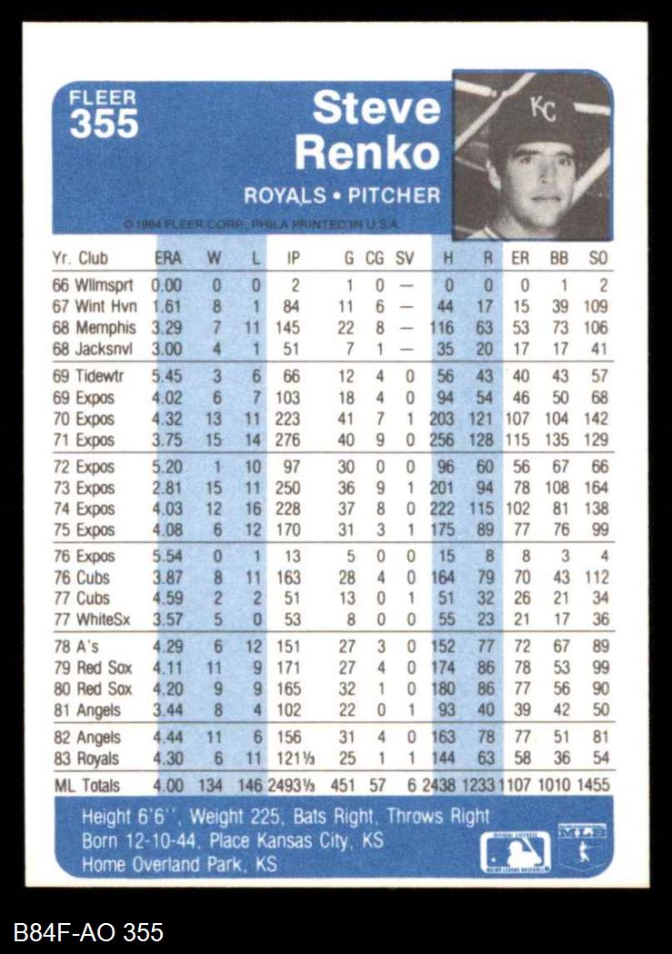 1984 Fleer Baseball Cards (1,882 available)1984 Fleer Royals (89 available)