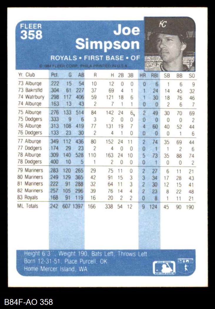 1984 Fleer Baseball Cards (1,882 available)1984 Fleer Royals (90 available)