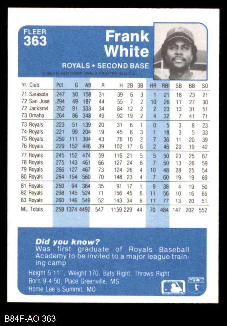 1984 Fleer Baseball Cards (1,894 available)1984 Fleer Royals (90 available)