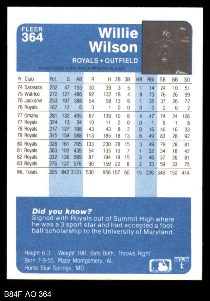 1984 Fleer #364 Willie Wilson 8 - NM/MT