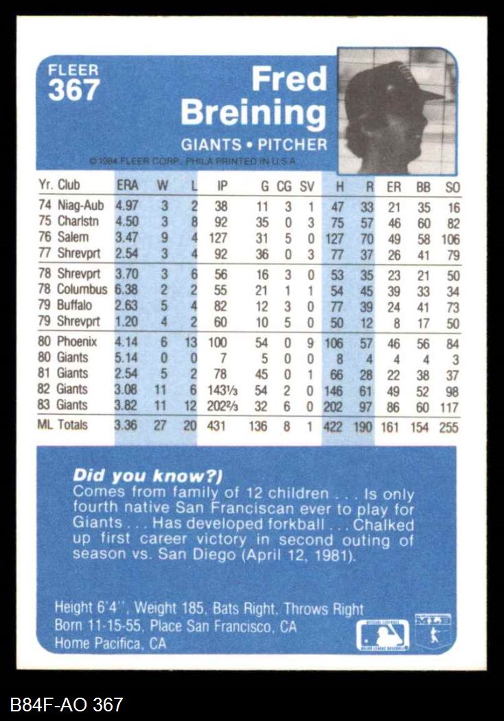 1984 Fleer Baseball Cards (1,885 available)1984 Fleer Giants (82 available)