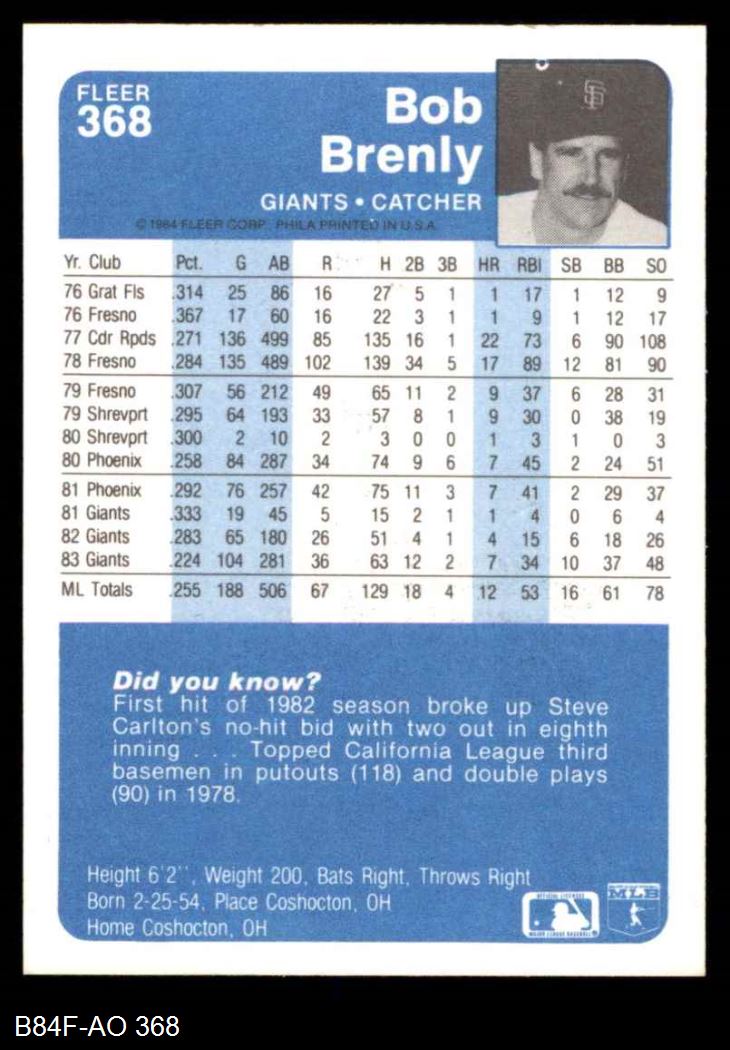 1984 Fleer #368 Bob Brenly
