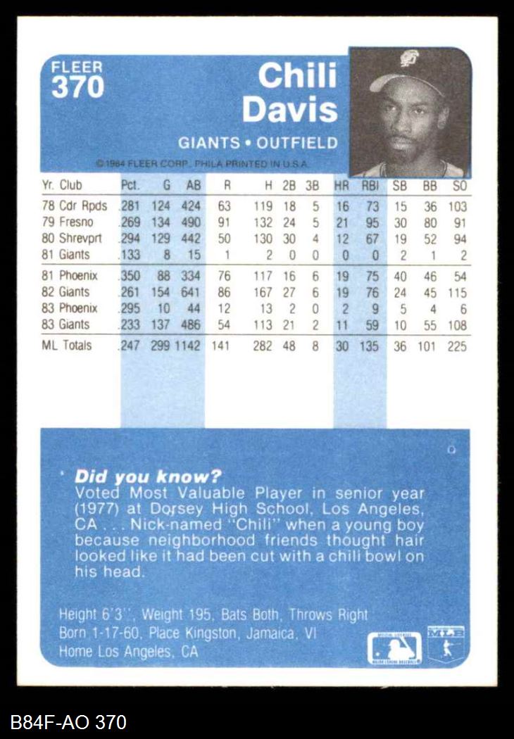 1984 Fleer Baseball Cards (1,885 available)1984 Fleer Giants (80 available)