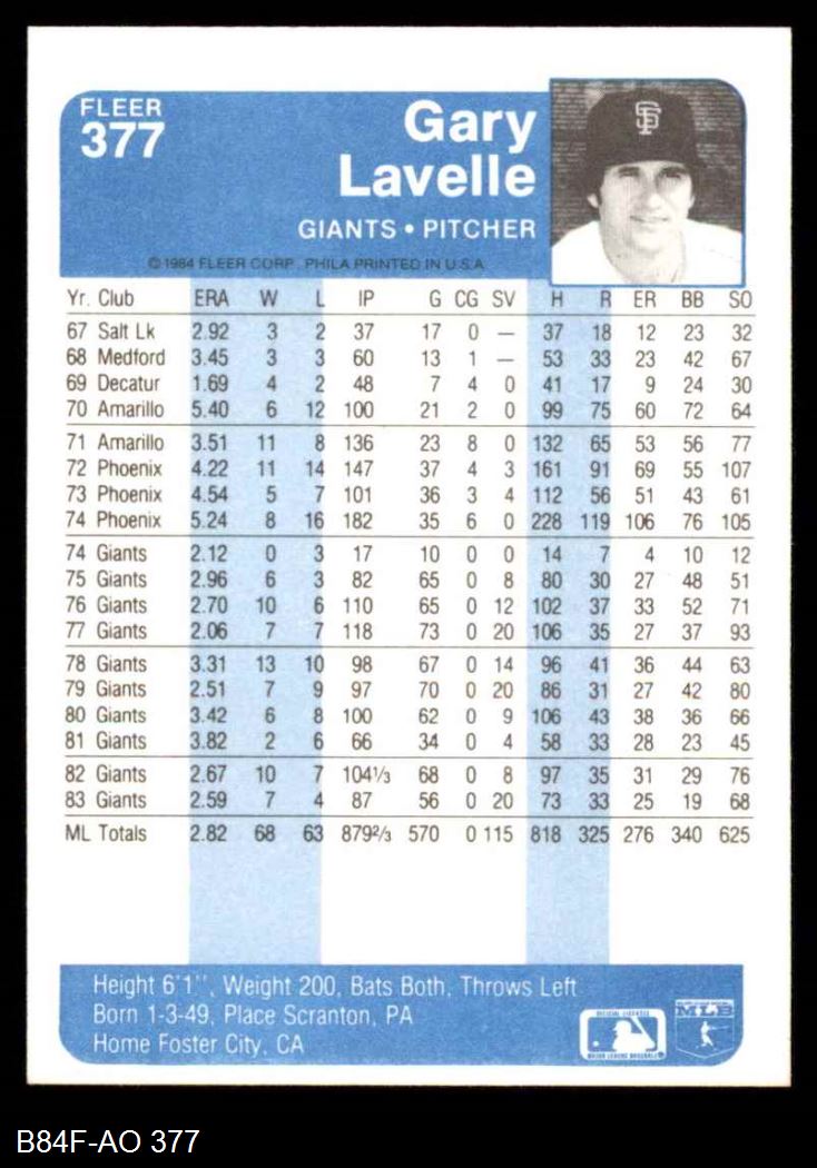 1984 Fleer Baseball Cards (1,885 available)1984 Fleer Giants (80 available)