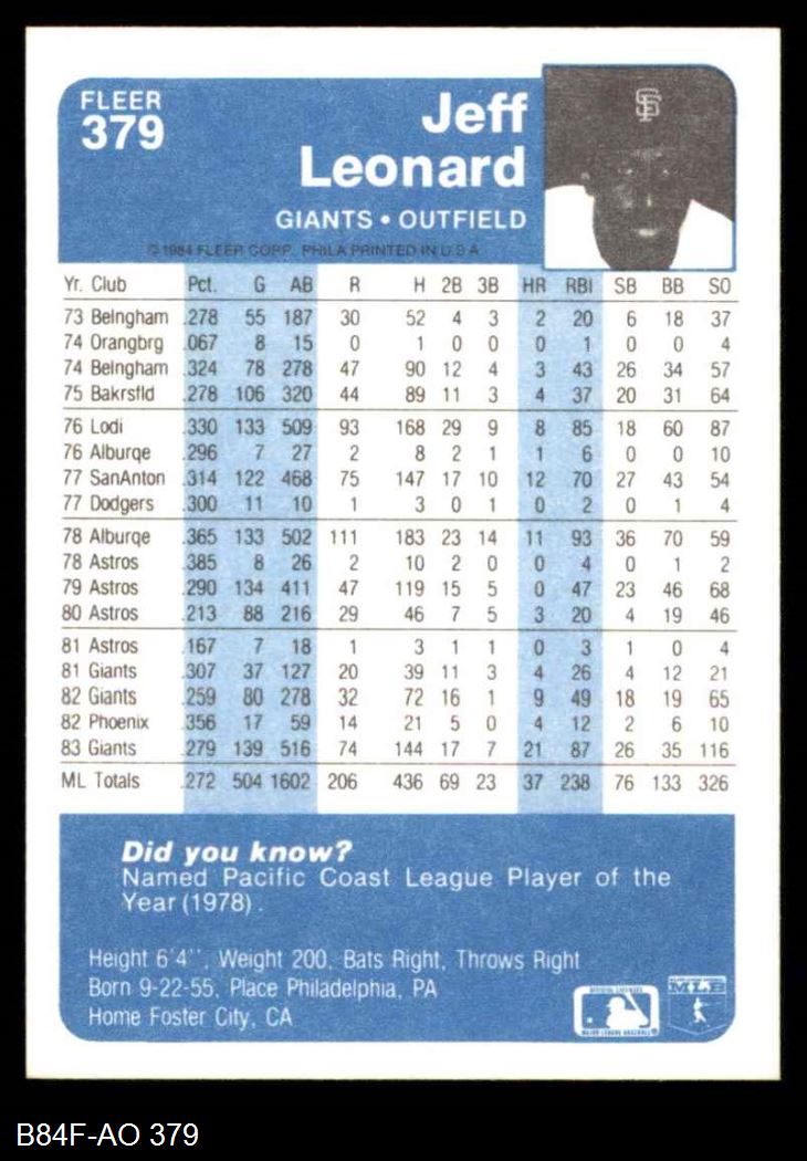 1984 Fleer Baseball Cards (1,885 available)1984 Fleer Giants (81 available)
