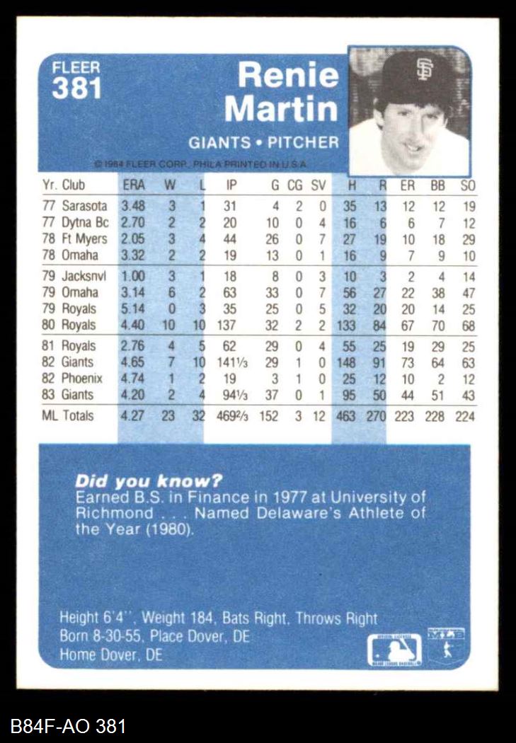 1984 Fleer #381 Renie Martin 8 - NM/MT