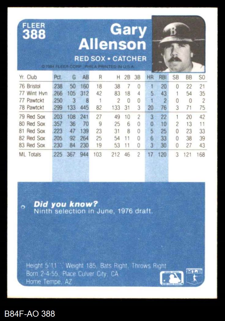 1984 Fleer Baseball Cards (1,895 available)1984 Fleer Red Sox (32 available)
