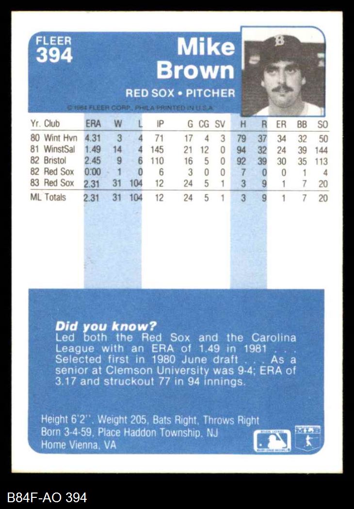1984 Fleer Baseball Cards (1,895 available)1984 Fleer Red Sox (33 available)